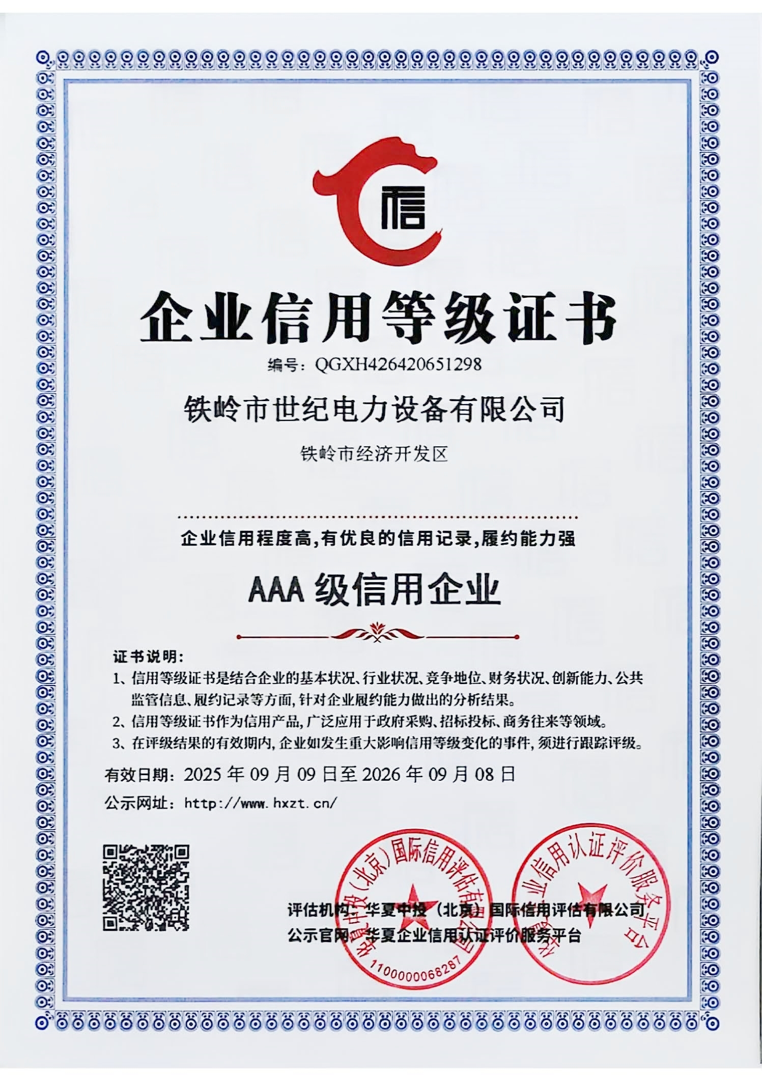 鐵嶺市世紀電力設備有限公司是集科研開發(fā)、生產(chǎn)制造、用戶服務于一體的國家高新技術企業(yè),始建于1999年,位于鐵嶺經(jīng)濟開發(fā)區(qū),占地面積5萬余平方米,建筑面積2萬余平方米。主要從事國家電網(wǎng)配套戶外高低壓隔離開關、電力電纜、變壓器成套裝置、高低壓開關柜、箱式變電站、絕緣子等產(chǎn)品的研發(fā)、生產(chǎn)和銷售。公司現(xiàn)有國家發(fā)明專利6項、實用新型專利9項,公司通過了ISO9001國際質(zhì)量管理體系認證、ISO14001環(huán)境管理體系認證和ISO 45001職業(yè)健康安全體系認證。